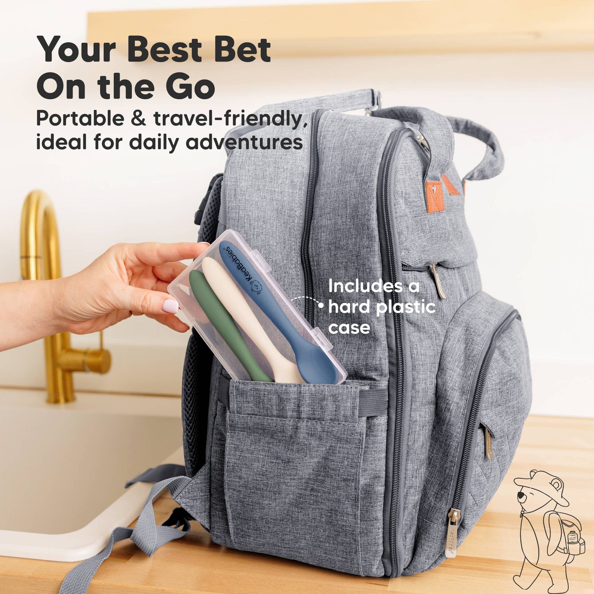 KeaBabies 3-Pack Prep Silicone Baby Spoons are designed for all feeding stages. These baby utensils are made from food-grade, BPA-free soft silicone & gentle on gums. The weighted handles help toddler easy-grip & hold food securely while self-feeding.