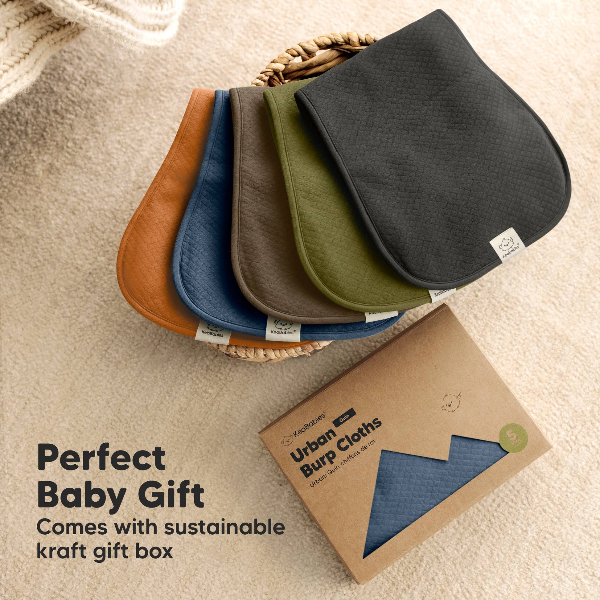 KeaBabies Urban Quin Burp Cloth is the perfect baby girl burp cloths and baby boy burp cloths. Made with plush, absorbent dual-layer cotton, it keeps messes at bay while offering comfort with its figure-8 design. Available in vibrant palettes, these baby burp clothes are the ideal baby shower gifts!