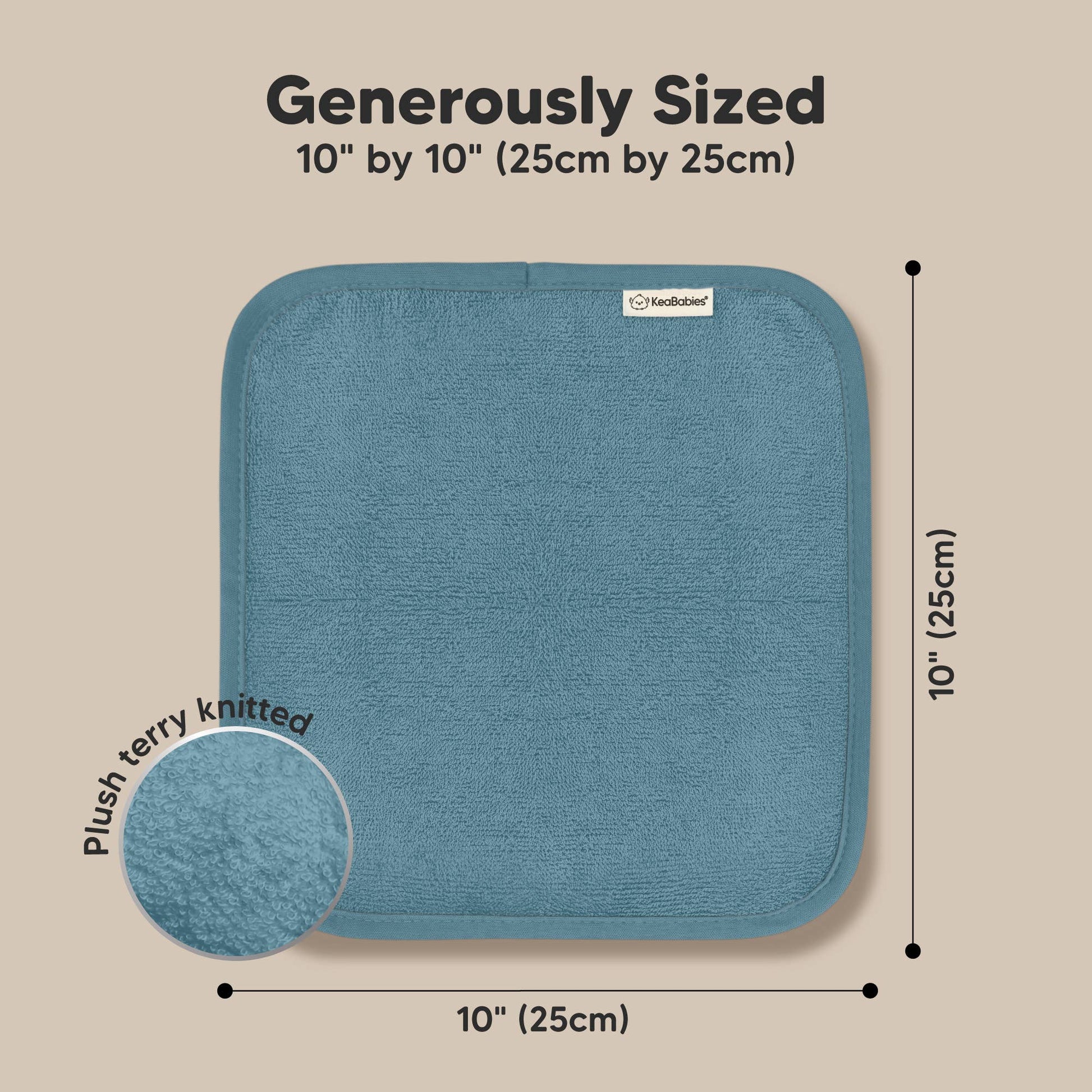 Sized at 10" by 10" covering the palm of an adult, making them great for multiple purpose. Some versatile uses includes using them as baby bath cloths, burp cloths, baby rags, face towels, makeup removal washcloths, on the go baby wash cloths, and so much more. Suitable for all newborn, kids, and adult.