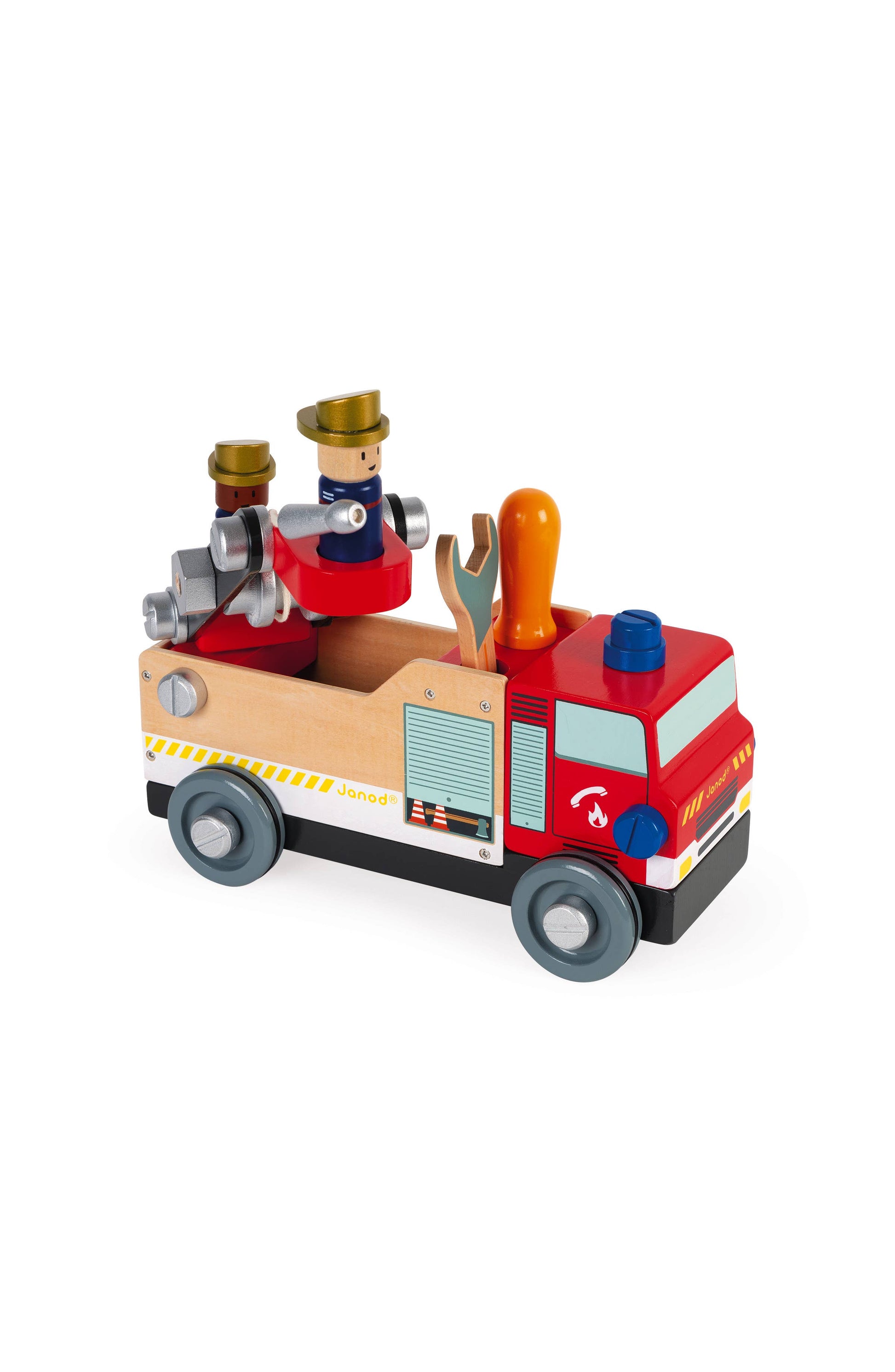 For children aged 3-8 years. Wooden toy. 2 toys in 1: a construction game to reassemble a magnificent fire engine using the many nuts, plates and screws provided. Once assembled, children can let their imaginations run wild to create grand adventures with this fully-fledged toy! Comes as 45 pieces, with 2 tools and 2 fire fighters and instructions for assembly.
