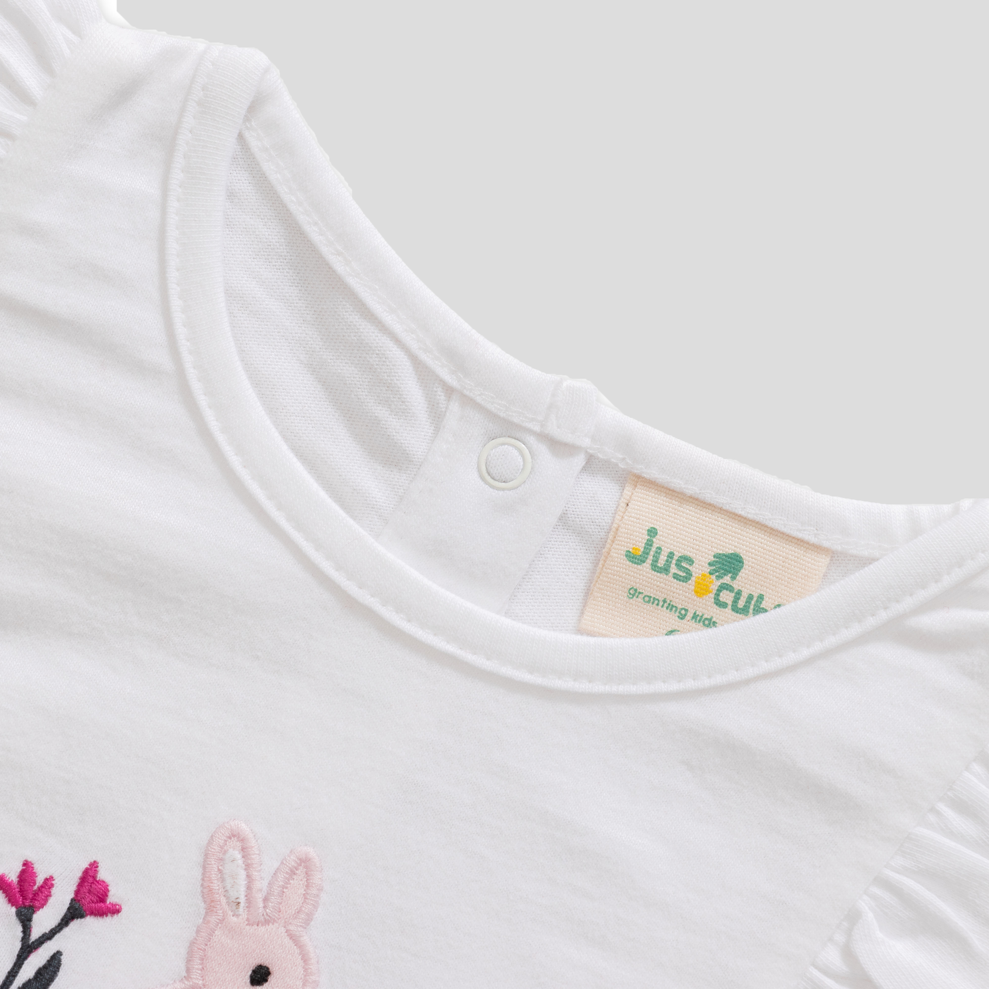 * Ruffles on top and a rabbit patch embroidery for more cuteness