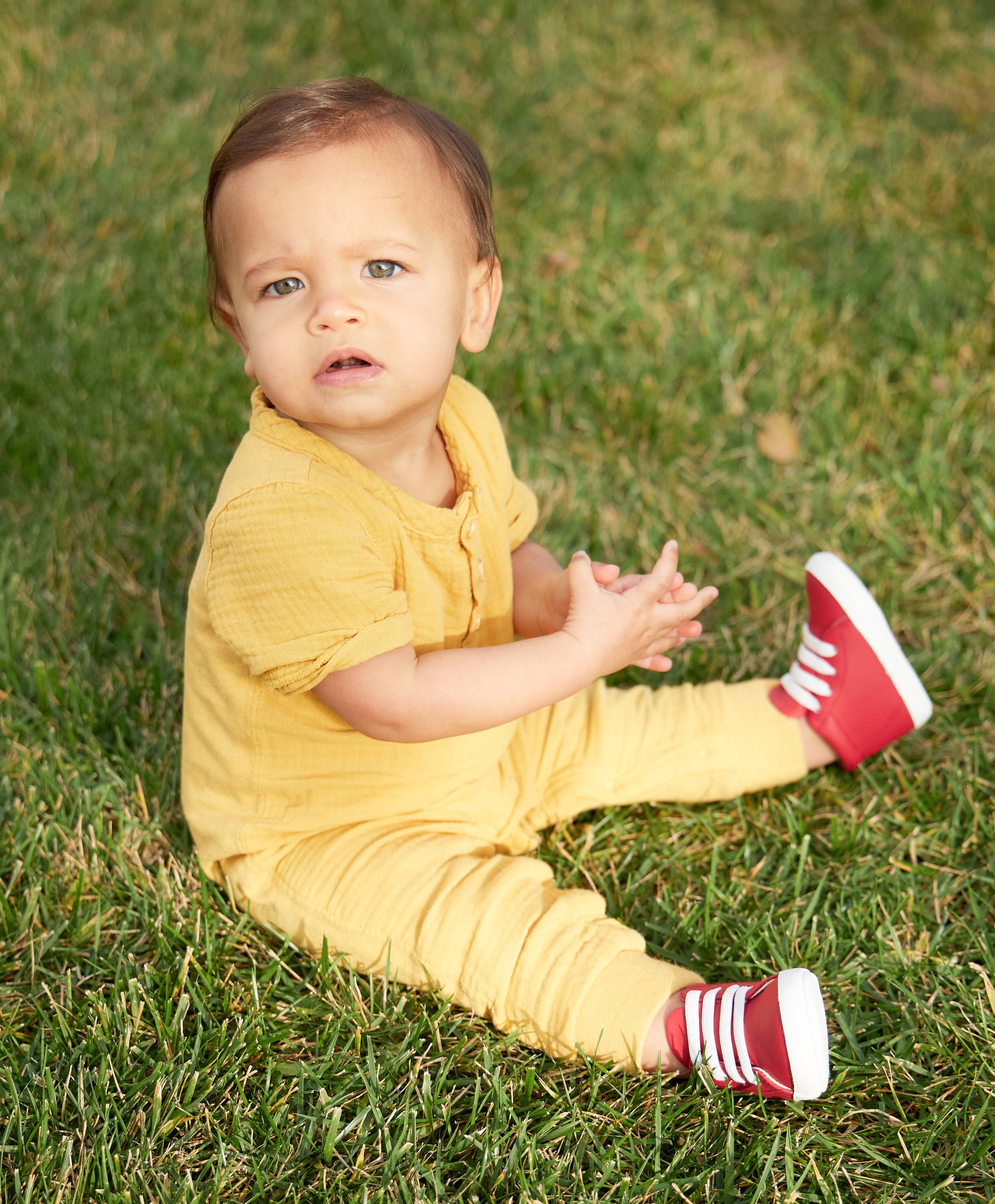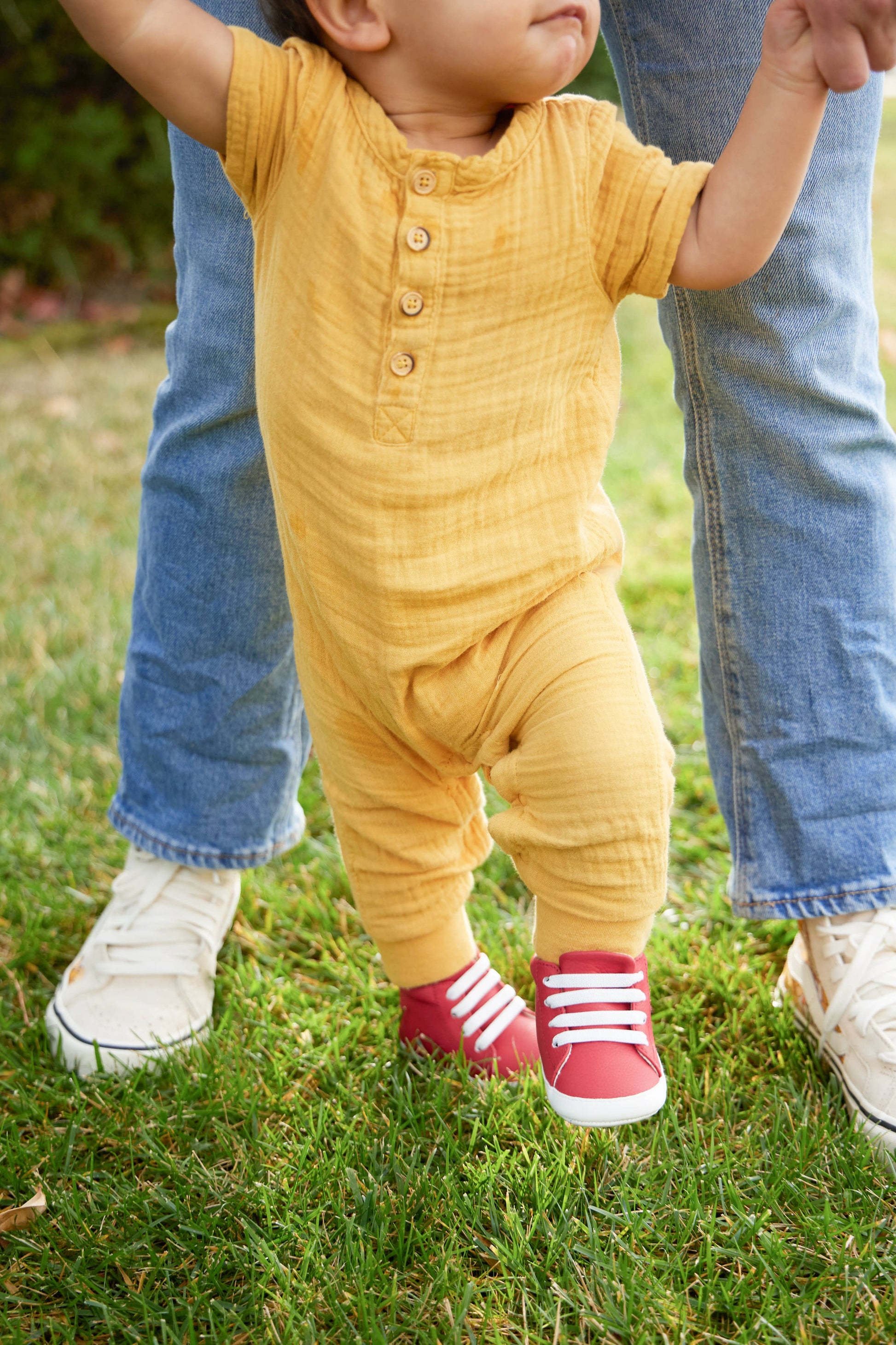 For napping and crawling and strolling and cruising … these adorably-sized high tops are ready for your little sneakerhead! Crafted from flexible, soft-soled Earth Leather™, our Sneaks boast comfort for pre-walkers and new walkers. Machine washable and eco-friendly with handy elastic laces for easy on/off, baby will make every shot with these quality sneakers! ●Shoe Box Dimensions: 4.9"L × 5.3"H × 2.6"D ●Functional Fabrics - Earth Leather™ exterior, PVC/PU free and animal-free; Machine washable ●Extras - Easy to put on and stay on; Comfortable and durable; Recycled packaging; Designed in California; Toxin Free* Earth Leather™ is free of BPA and other toxic by-products. Limited lifetime warranty.