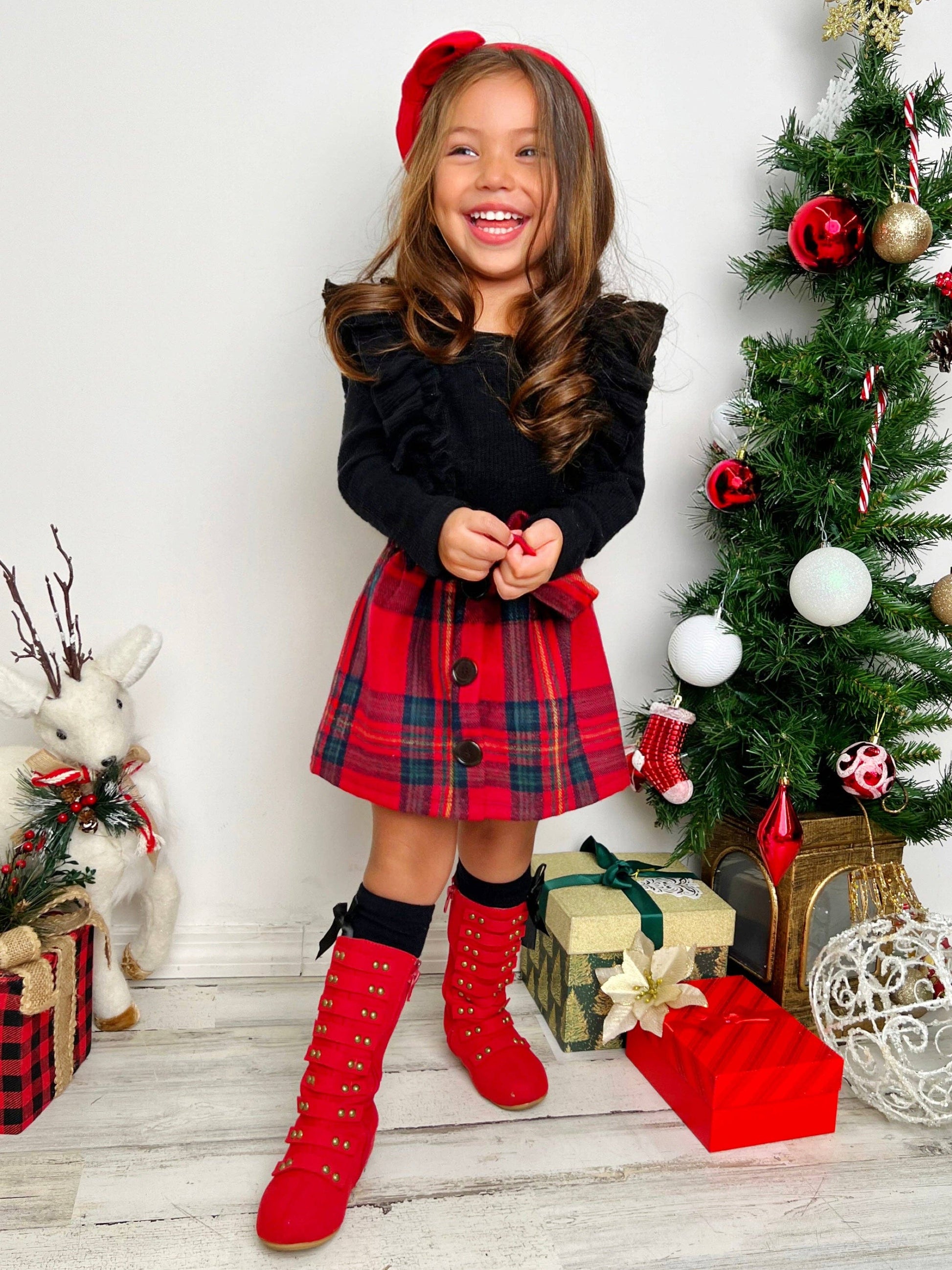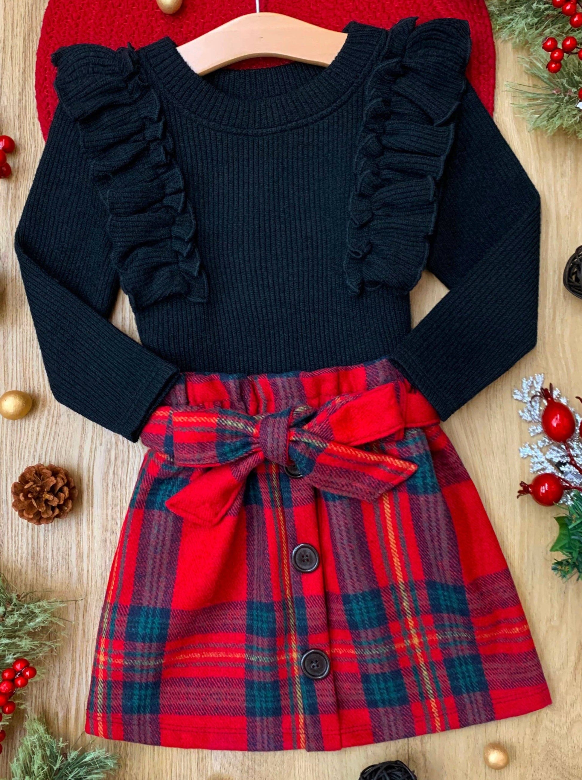 * Make way for your little fashionista! This red ruffled sweater and plaid skirt set sports the season's best styles, from its chic detailing to its beautiful fall colors. Your baby will be the coolest IT girl on the block!