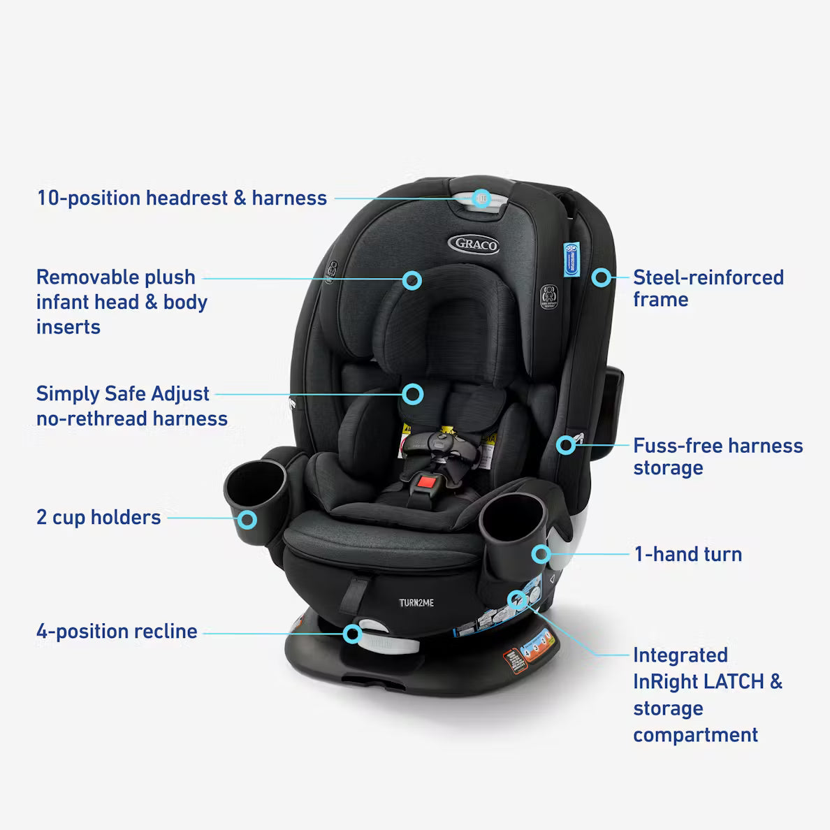 - Rotate from rear-facing mode with one hand to easily get baby in and out of the seat; listen for it to "click" back into position for a safe and comfy ride