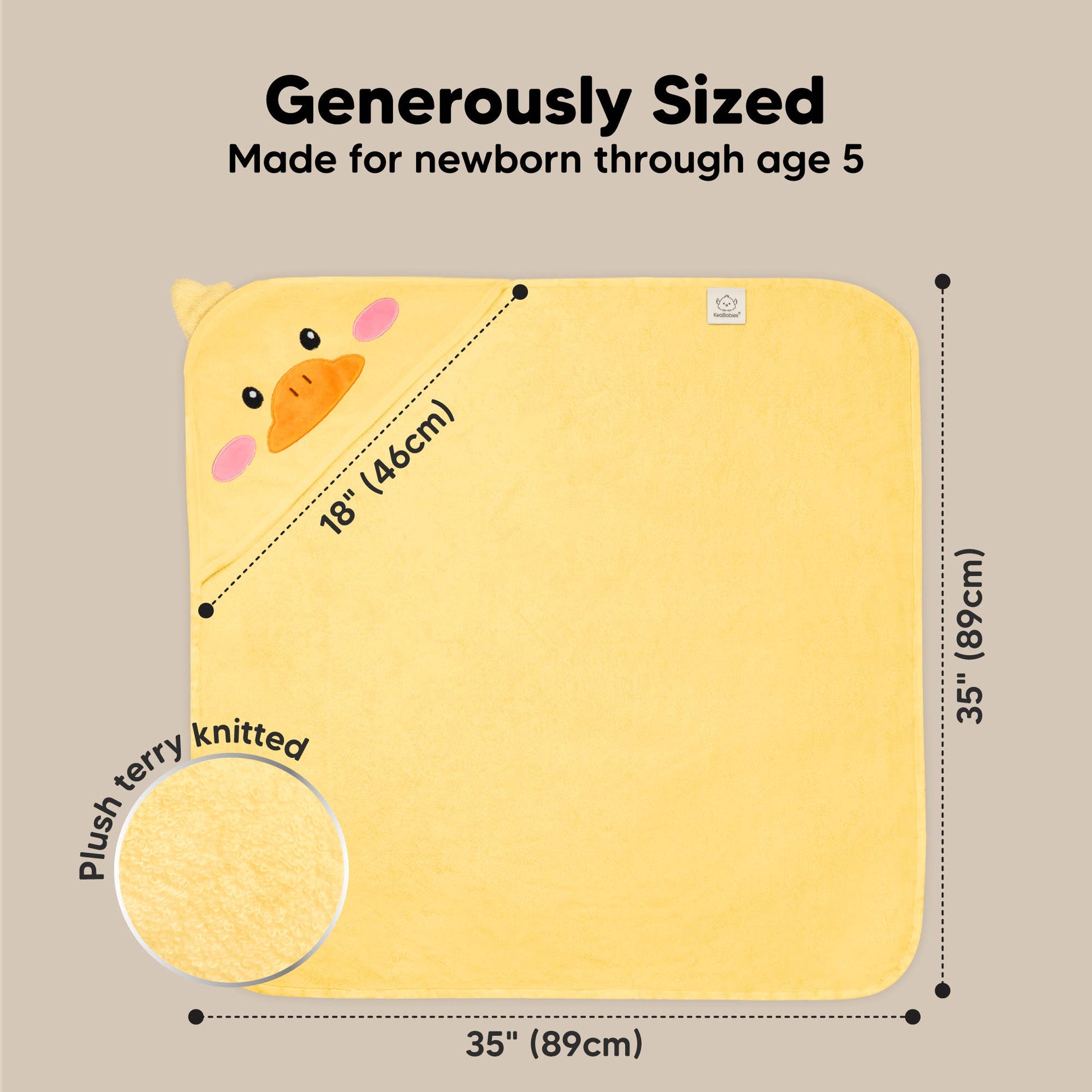 Made with premium quality 500 GSM fabric and featuring sizes 35” x 35"(regular) and 30"x30" (petite), our baby hooded towel is the perfect bath essential for newborns and toddlers. The baby bath towel is ultra-soft and highly absorbent, catering to all skin types, including sensitive skin. Each baby towel set comes with an adorable hood, which helps in keeping your little one warm and cozy after their bath. The baby hooded bath towel for girls and boys is machine washable, dryer friendly and great for gifting.