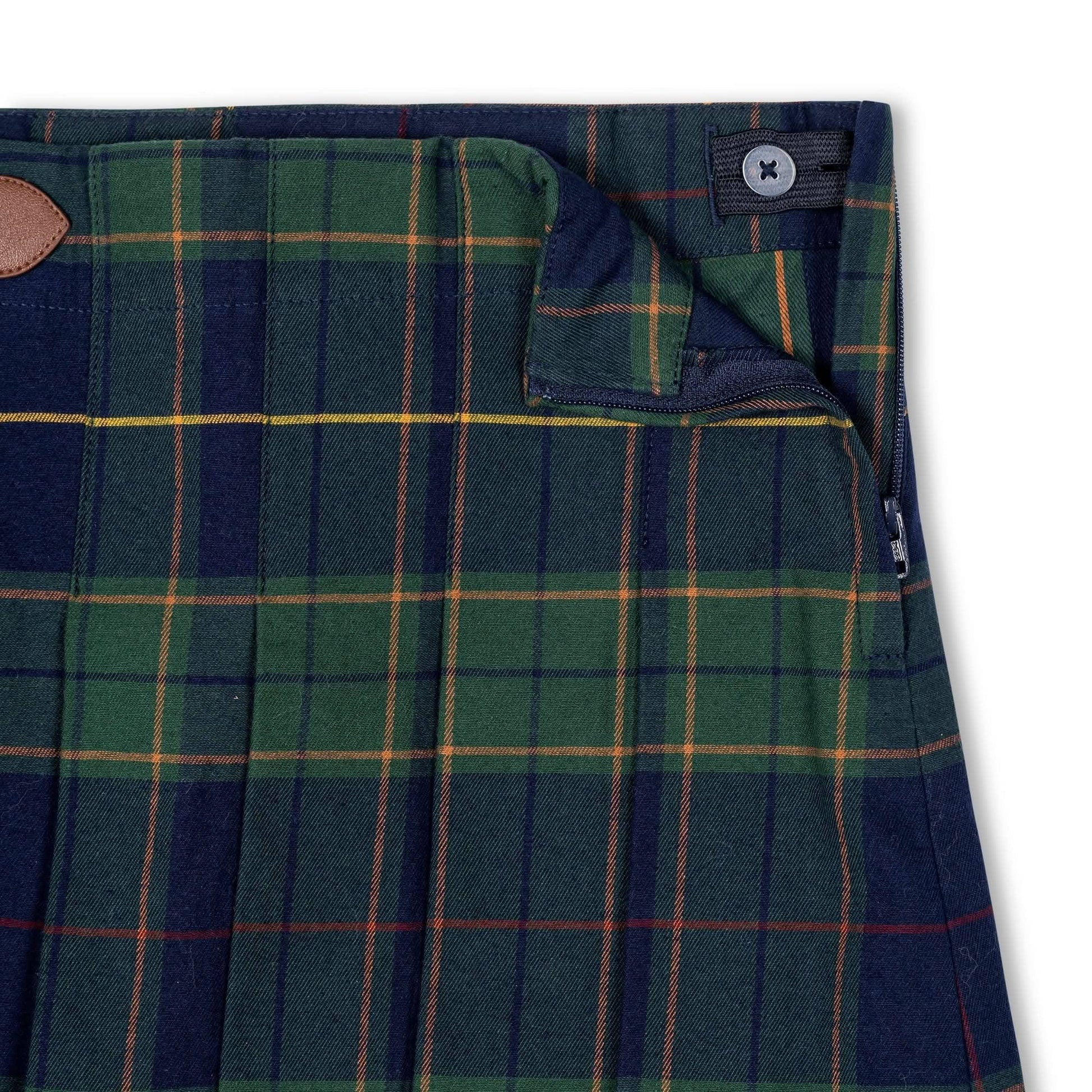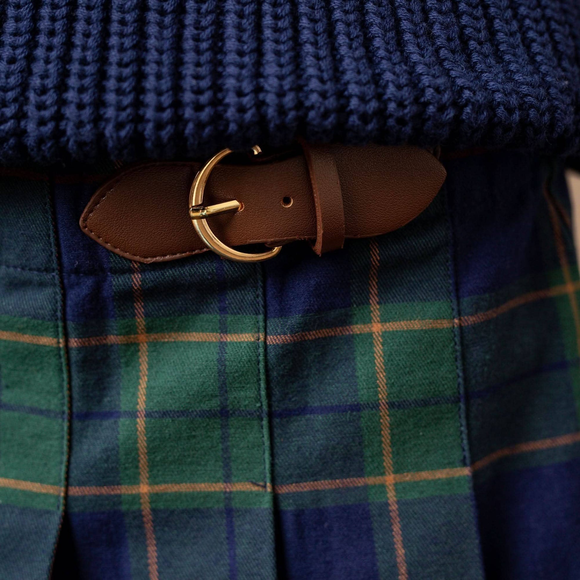 This classic pleated schoolgirl skirt is a great way to create a polished fall look for your girl. Features a faux leather buckle detail, hidden side zipper for easy on and off, and beautiful pleating throughout. Cut from our luxuriously soft organic cotton woven fabric. Pair it with one of our beautiful sweaters for a complete look!