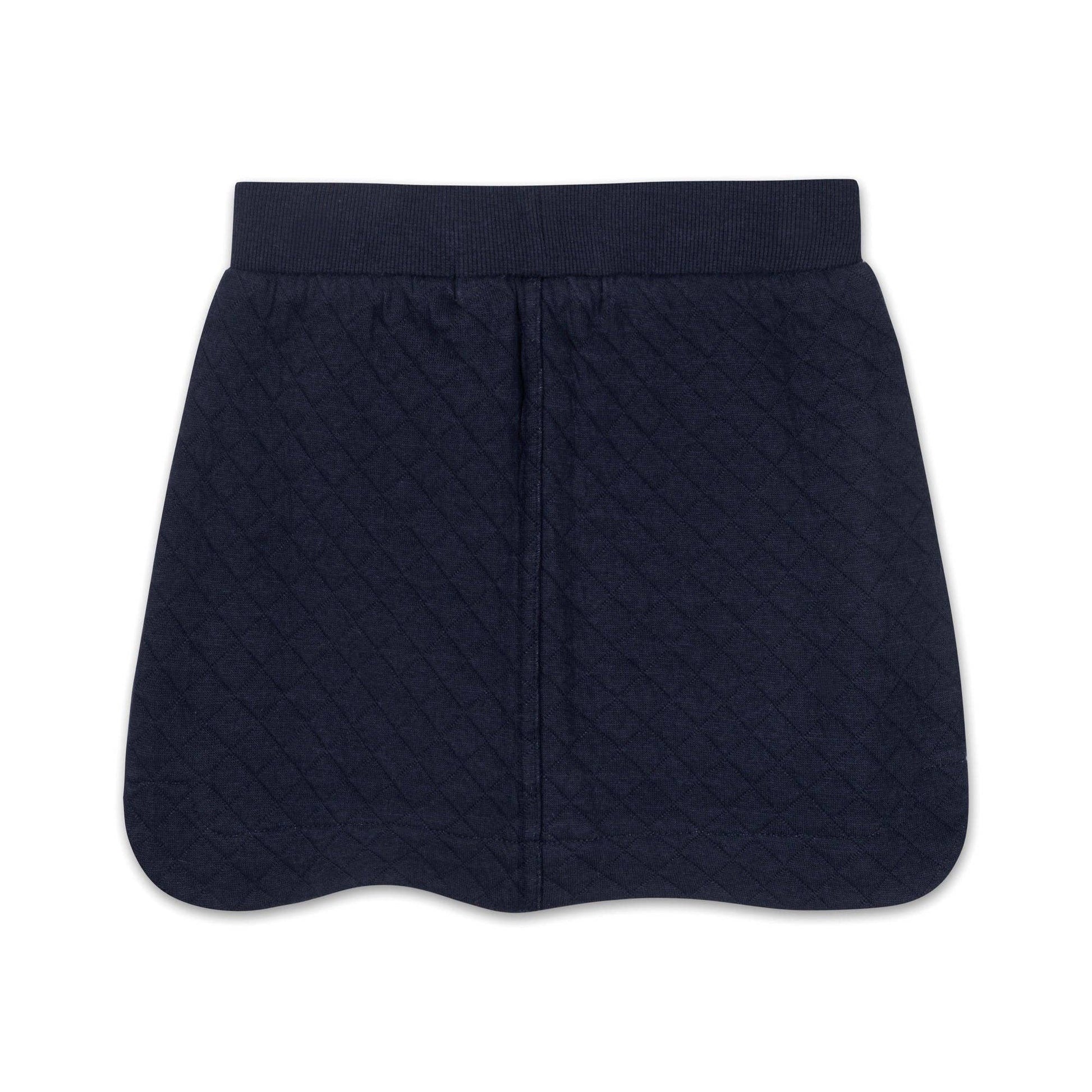 Our sporty quilted skort in a soft organic cotton blend pairs comfort with picture-perfect style. Features an easy pull-on elastic waist, a faux drawcord, and a soft jersey inner short to ensure this look is ready for playtime. Perfect for uniforms and pairs nicely with our collection of organic cotton sweaters and tops.