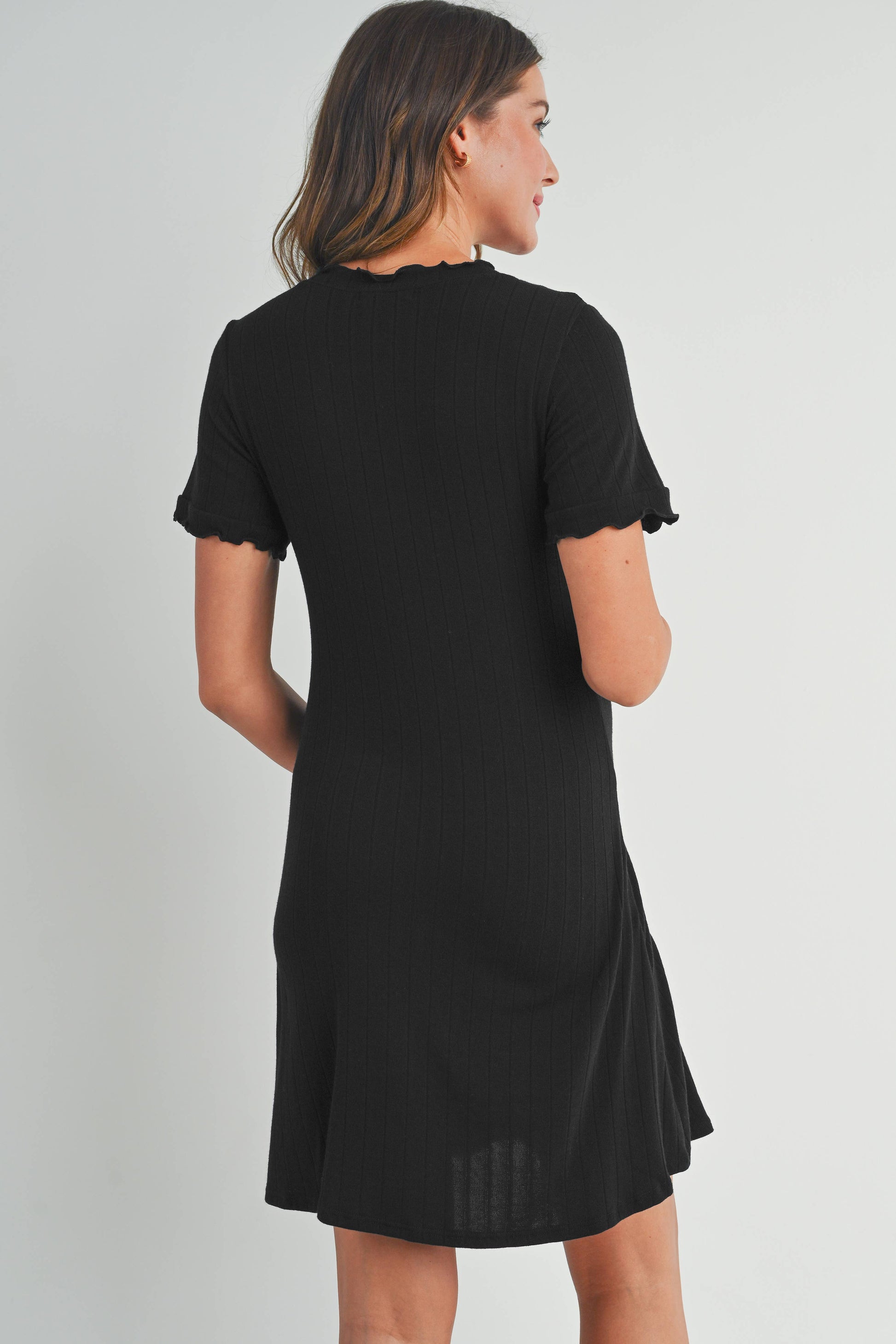 Ribbed Knit Short Sleeve Lettuce Trim Maternity Mini T-Shirt Dress