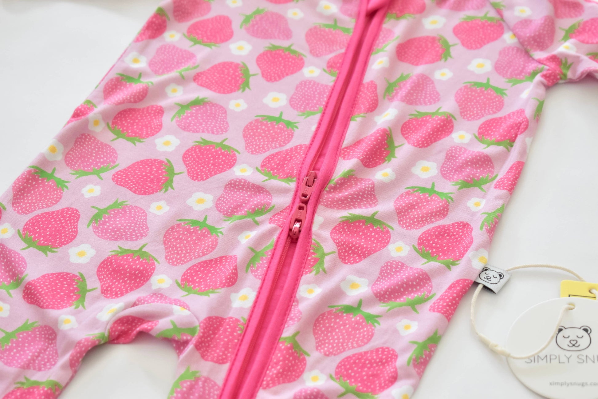 Little one feeling as soft as a ripe strawberry? They will be in this dreamy bamboo pajama! Made with gentle and breathable bamboo fabric, this romper is perfect for sensitive skin and ensures a comfortable night's sleep. The adorable strawberry print adds a touch of sweetness to bedtime.