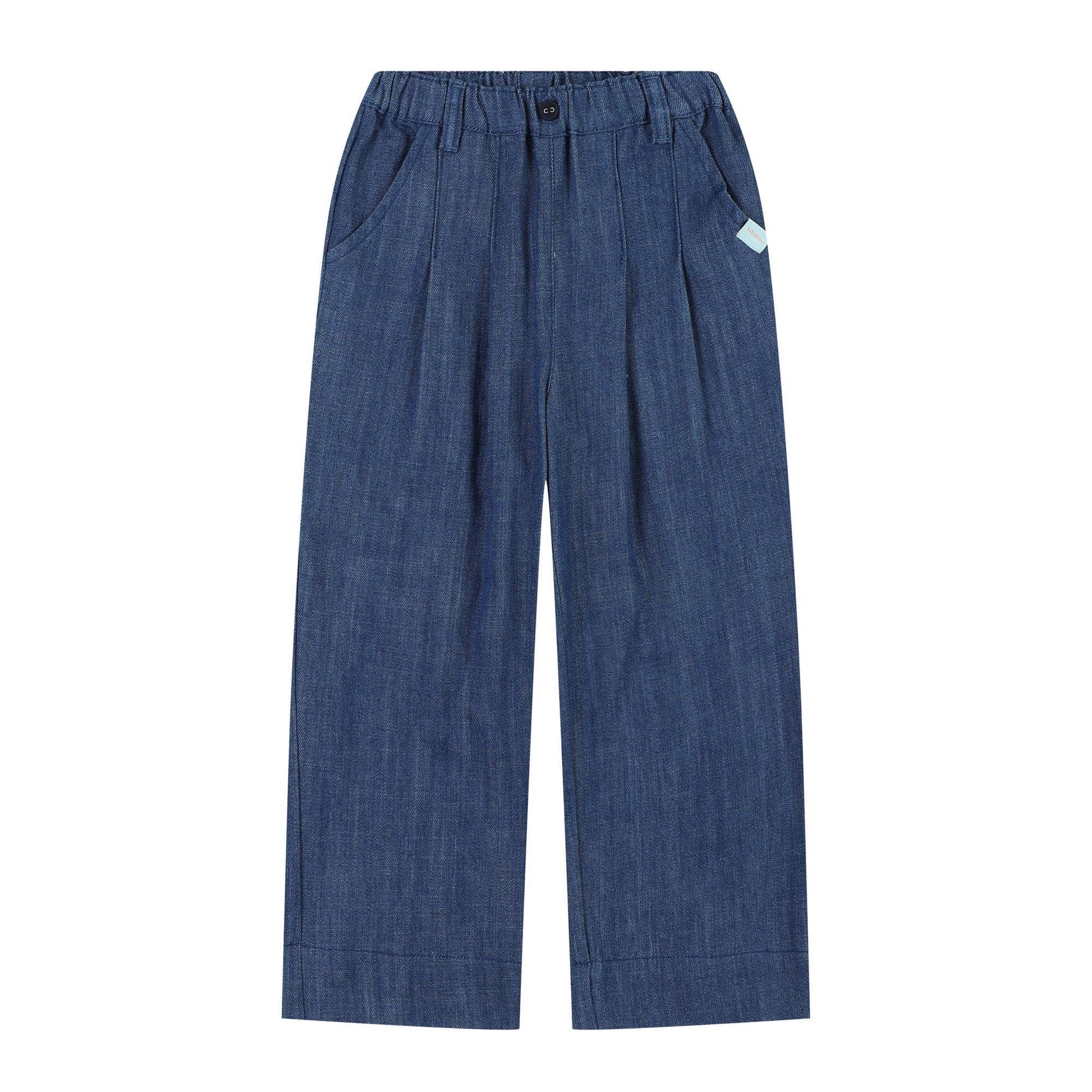 These kids' pleated wide-leg denim pants offer a stylish look and comfortable fit. Whether for casual outings, school, or playtime, these versatile denim pants pair easily with any top, providing a fashionable and relaxed look for your little one.